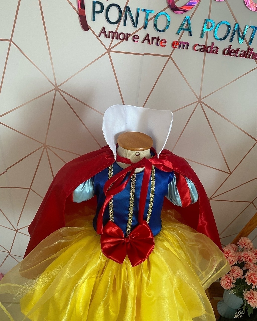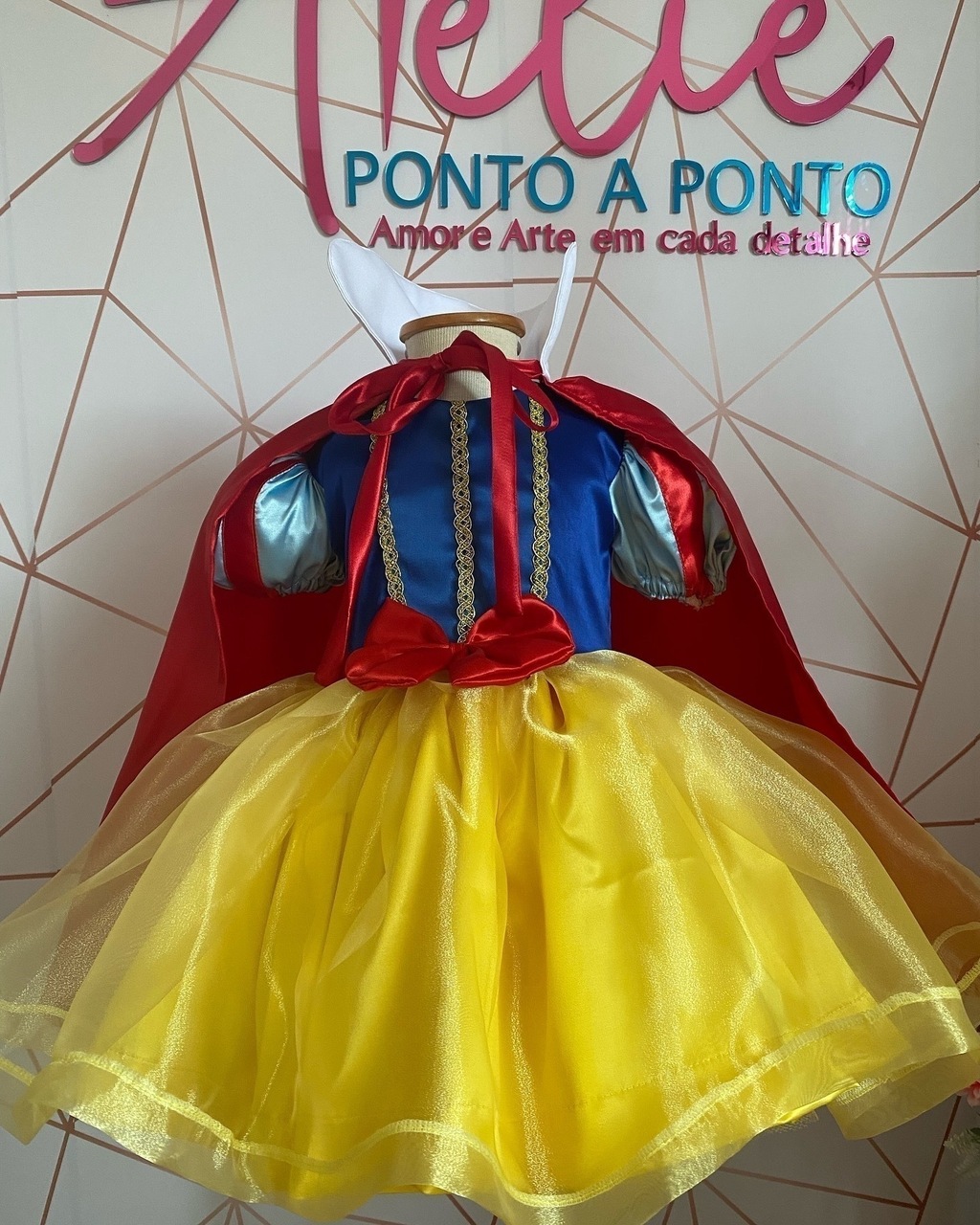 Apresentamos nosso Vestido Personalizado inspirado na Branca de Neve, confeccionado com delicadeza em organza e cetim, garantindo um brilho encantador e um destaque especial para sua filha em momentos inesquecíveis.